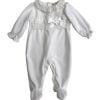 Nothing screams NEW BABY! Like a plain white sleep suit. This beautiful white velour sleep suit with satin bow will make the perfect gift for a baby shower or birth present. Your little one will be wrapped up warm, while looking absolutely gorgeous.