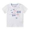 Little ones are always excited by a trip to the seaside. So, this fabulous white t-shirt online with fish appliqués to the front is bound to put a smile of their little faces. Classic but lots of fun to wear. The shoulder button opening makes dressing extra easy and adds a little interest to a simple classic. Made from super soft, cosy cotton and designed to be gentle against delicate skin, ensuring they are comfortable all day long.