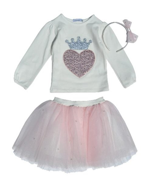 PRINNY – Pink & White Skirt 3 Pc Set For Girls
